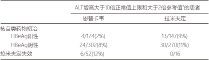 表4∶在Al463022、Al463027和Al463026研究中,核苷類(lèi)藥物初治患者在停藥后隨訪期發(fā)生的肝炎惡化